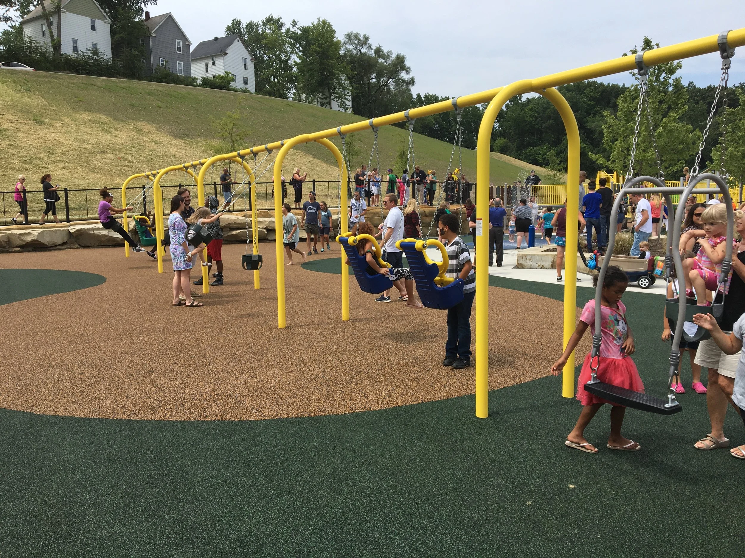 Then, in celebration of their 100th anniversary, the Rotary Club of Elyria partnered with the Lorain County Metro Parks to create an inclusive playground that welcomes children of all ages and abilities. The design ensures that every child can play together, without barriers or segregation, through thoughtfully integrated accessibility features.