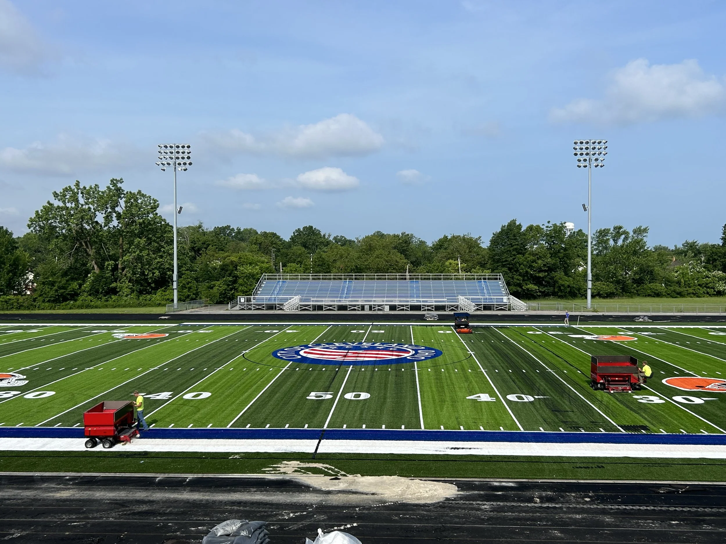 The Collinwood Athletic Complex, designed for use by the Cleveland Metropolitan School District, features a 400-meter all-weather track, a synthetic turf football/soccer field, a 3,600 seat stadium with lights, and a multipurpose building with concessions, restrooms and locker rooms.