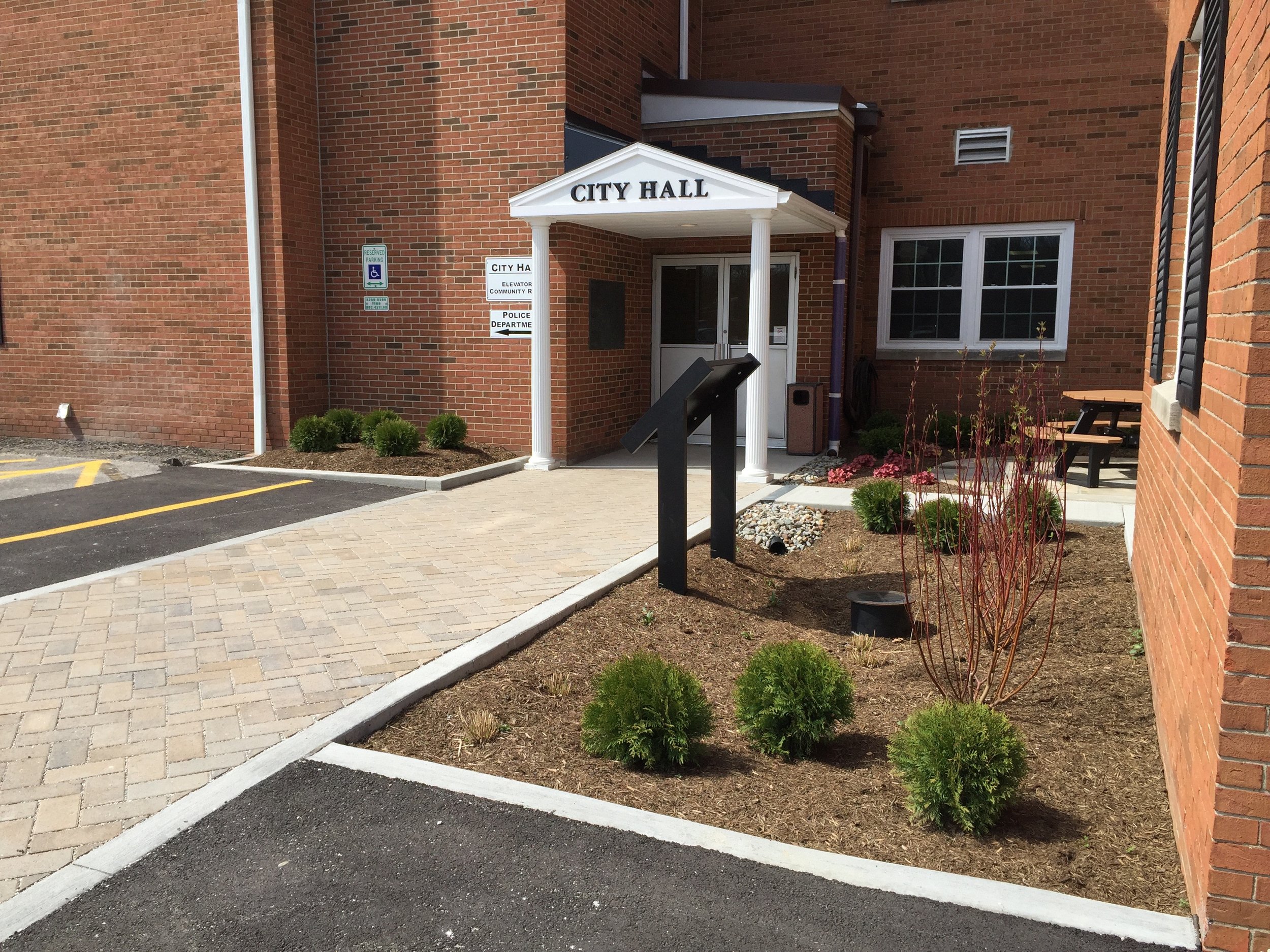 With the savings realized from Behnke’s design, the team upgraded and enhanced the main pedestrian entry into city hall with a portico (drained with a translucent downspout to raise visitors’ awareness of rainwater runoff,) and small seating area. Also incorporated are contrasting paving treatments that create a crosswalk to ensure pedestrian safety.