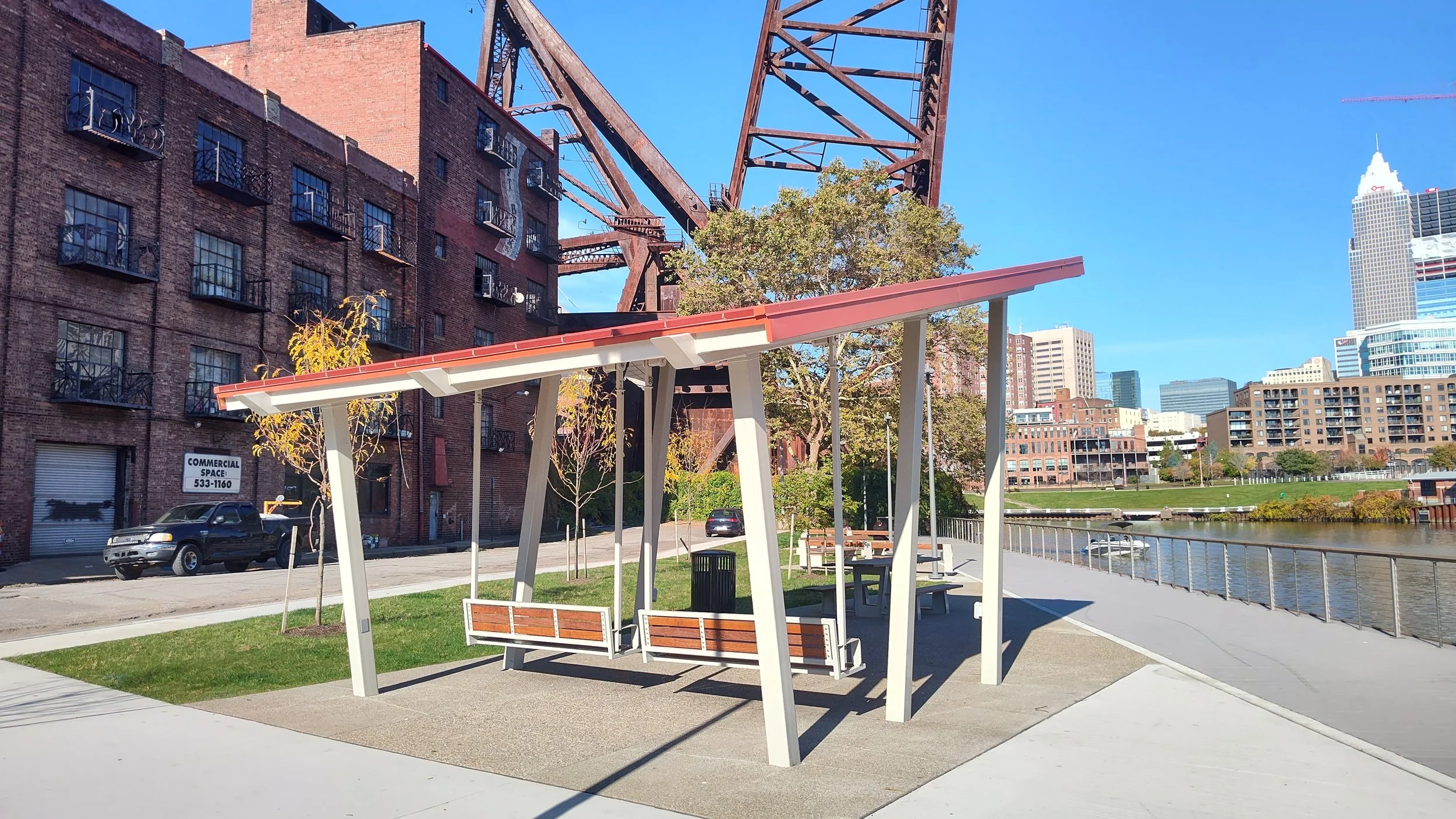 This park is approximately a half an acre in size, and it is located within the Flats District along the Cuyahoga River. The goal is to implement improvements to this park and reestablish it as a premier destination and gathering place along the river.