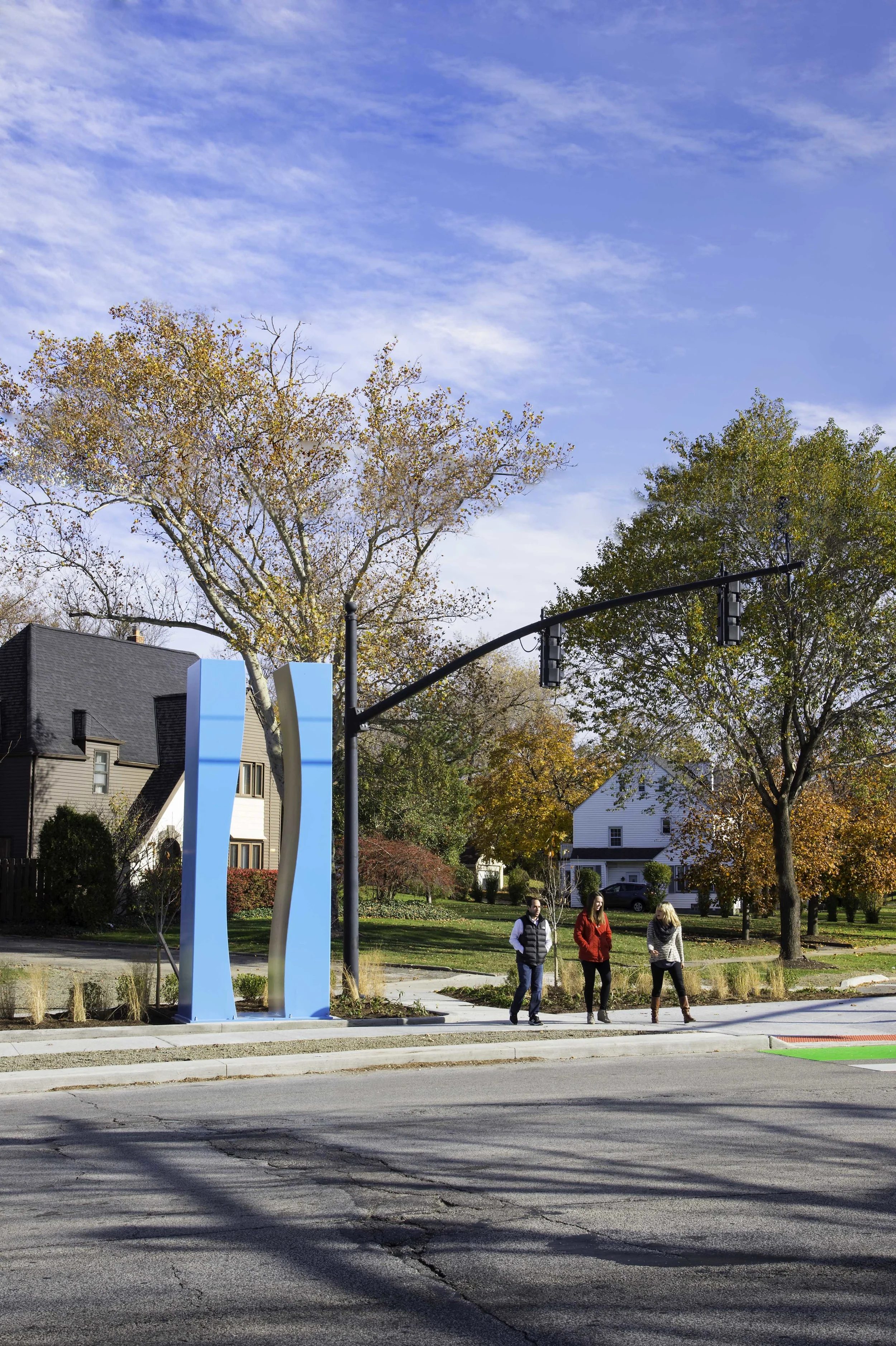The park, public art, reconfigured intersection, new crosswalks, and pedestrian crossing signals improve pedestrian safety, calm traffic, and will help stabilize the Lomond and Moreland Neighborhoods.