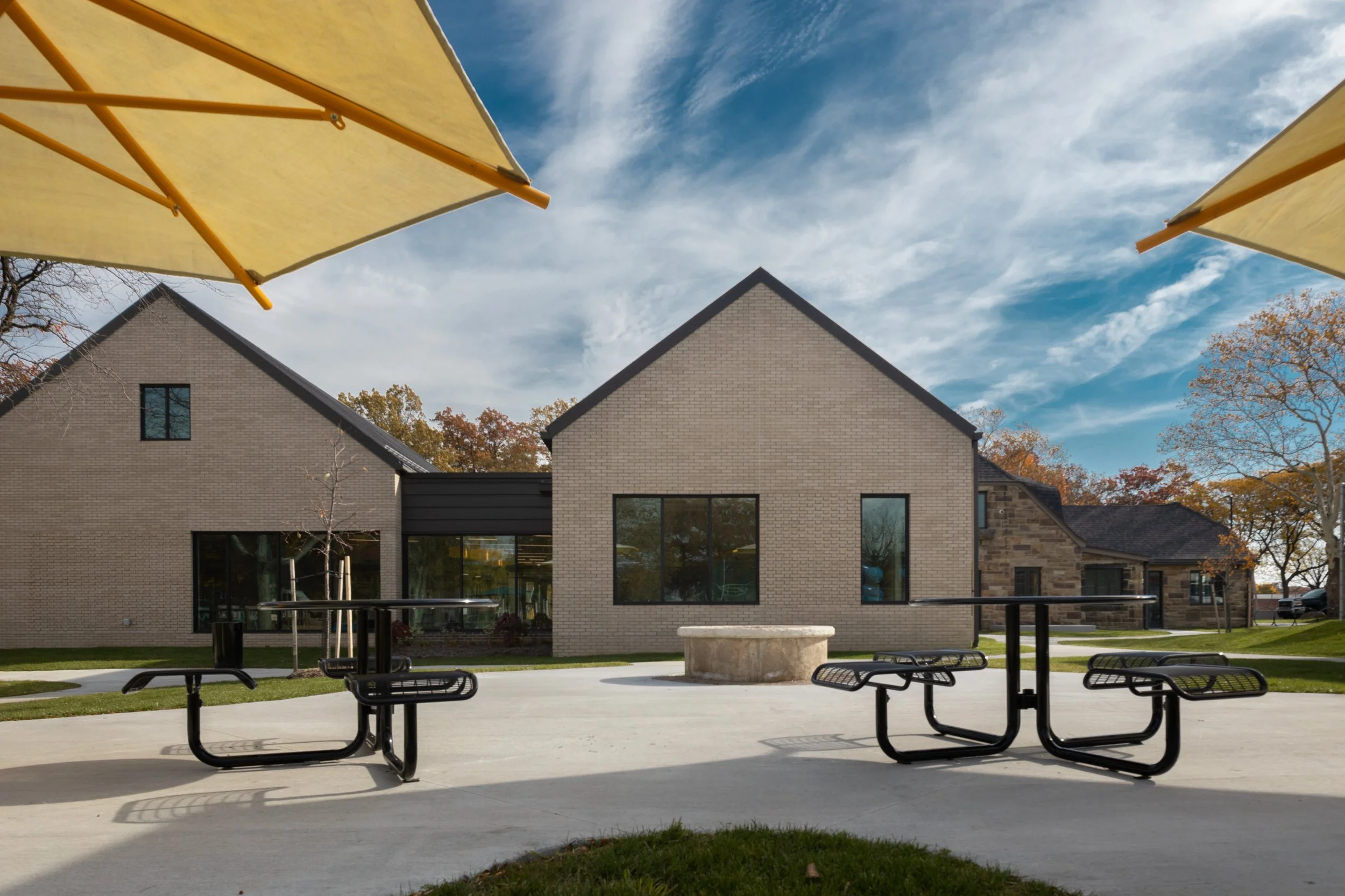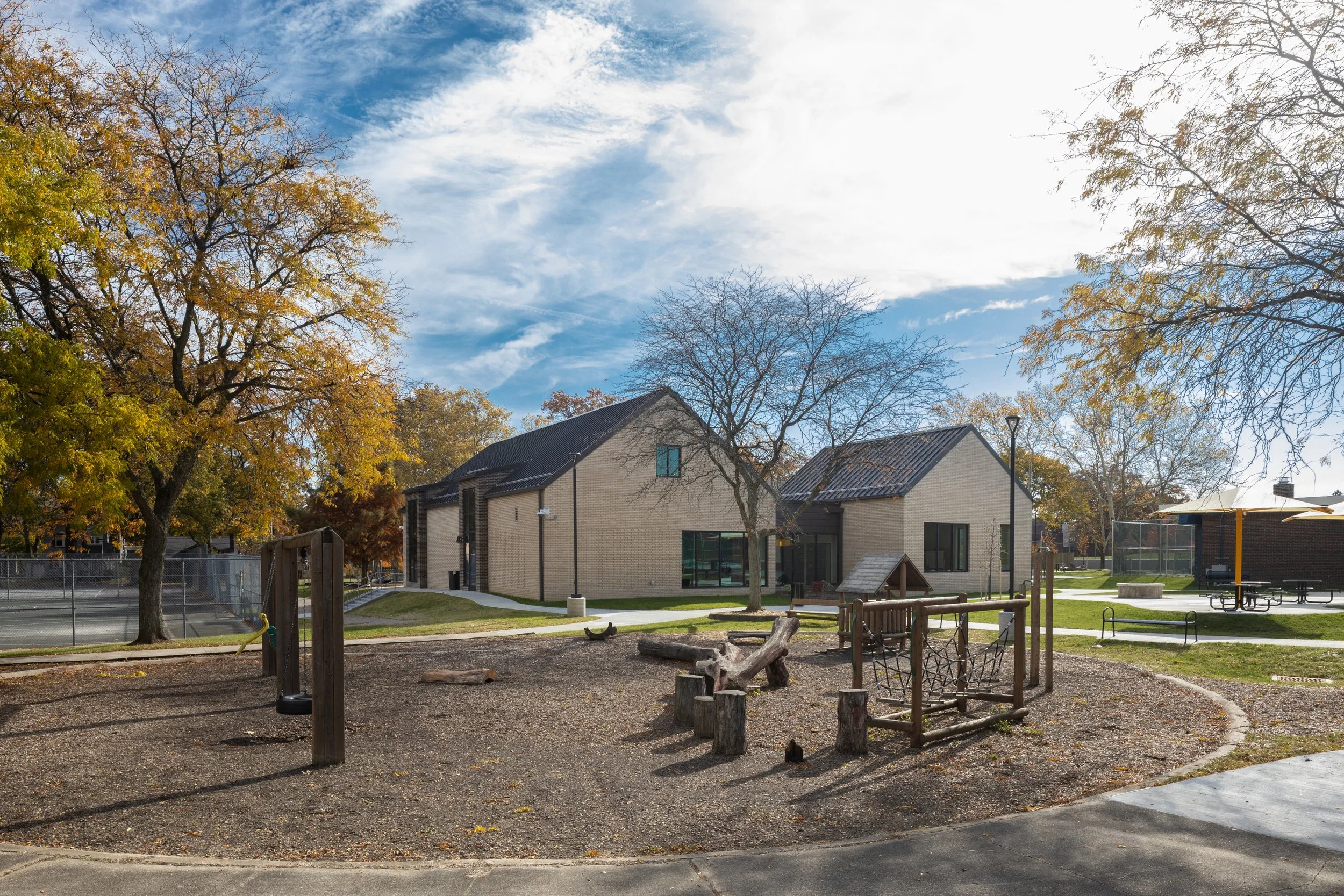 This project also enhances public connections from nearby communities and schools by creating pedestrian and vehicular separation, and by developing a clear and celebrated community center entrance.