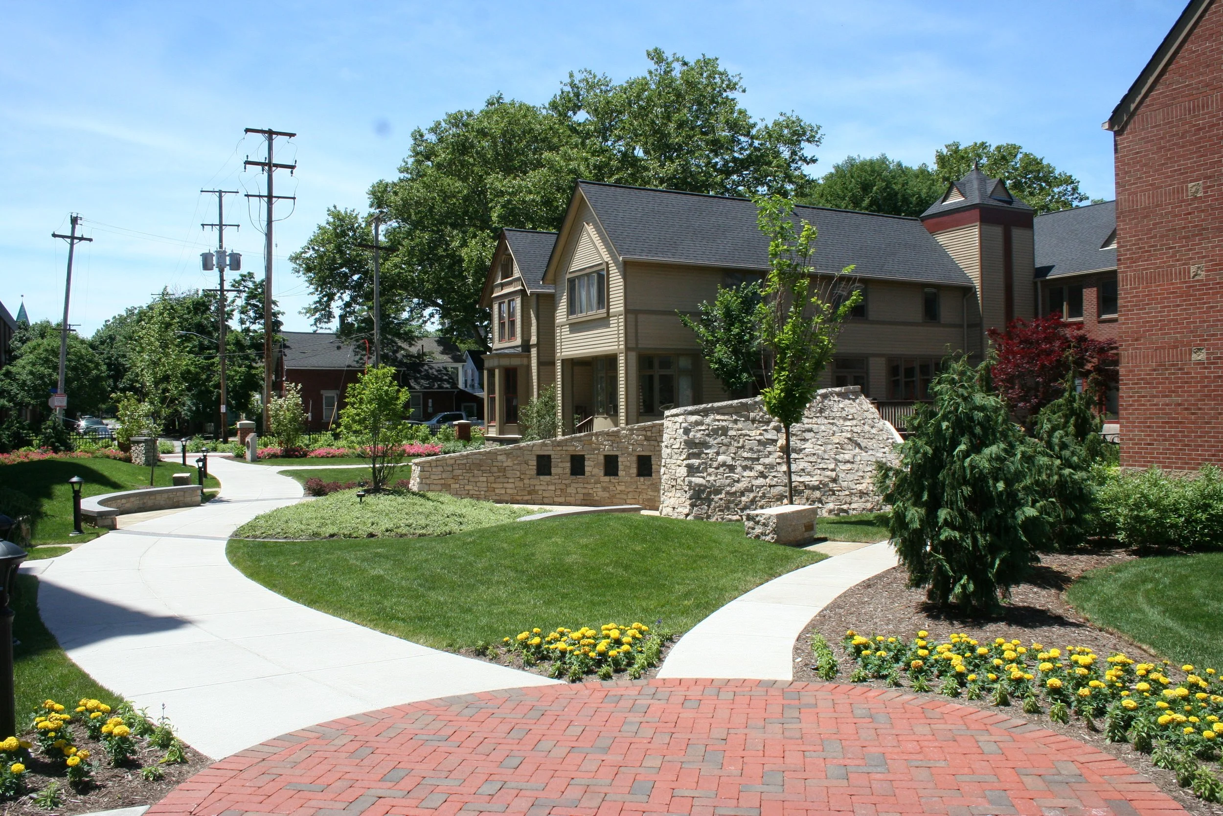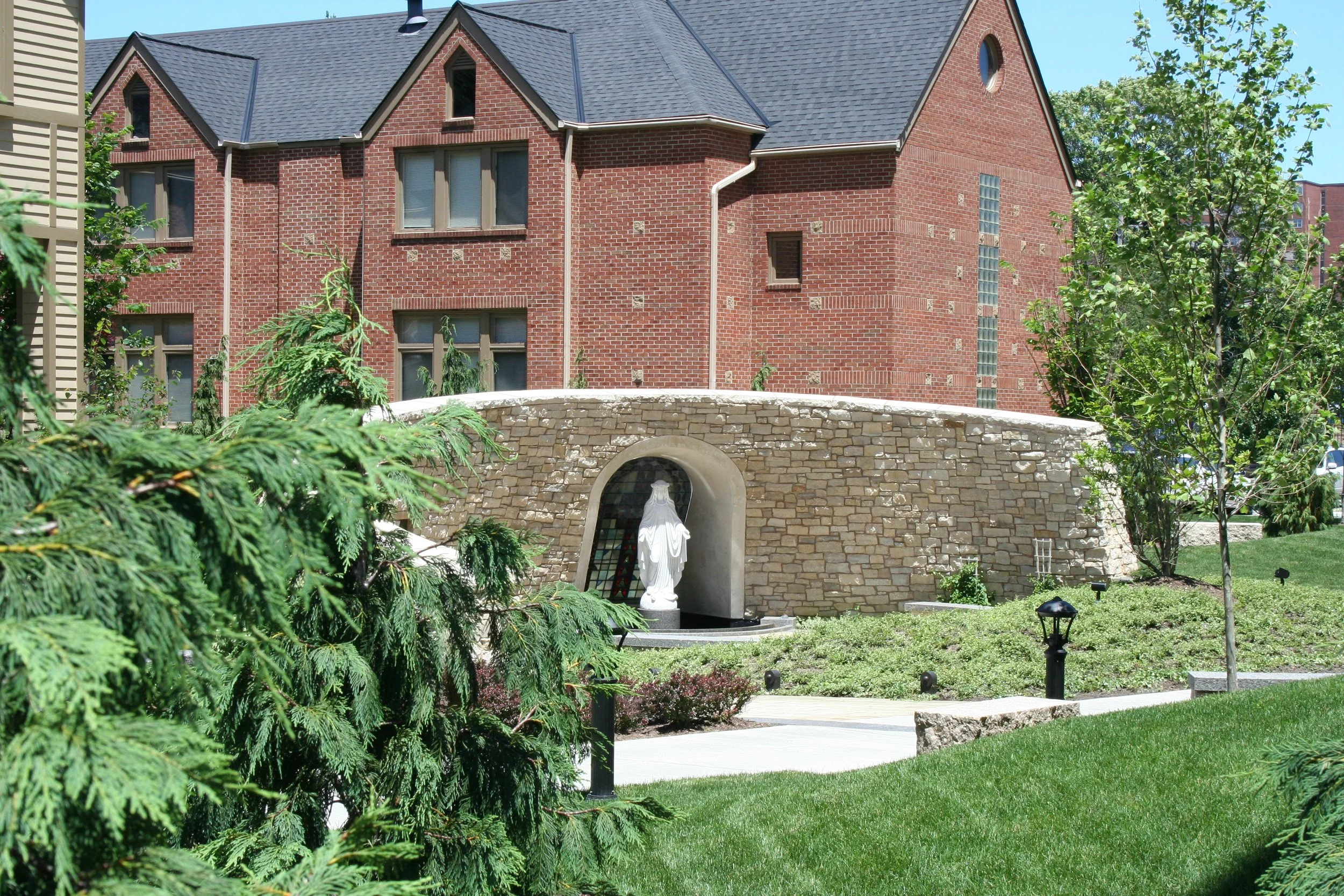 The Pathway provides an intimate pedestrian connection between Welsh Commons and the Grotto. This thoughtful walkway honors the footsteps of a beloved former educator and integrates elements of the Corporal Works of Mercy.