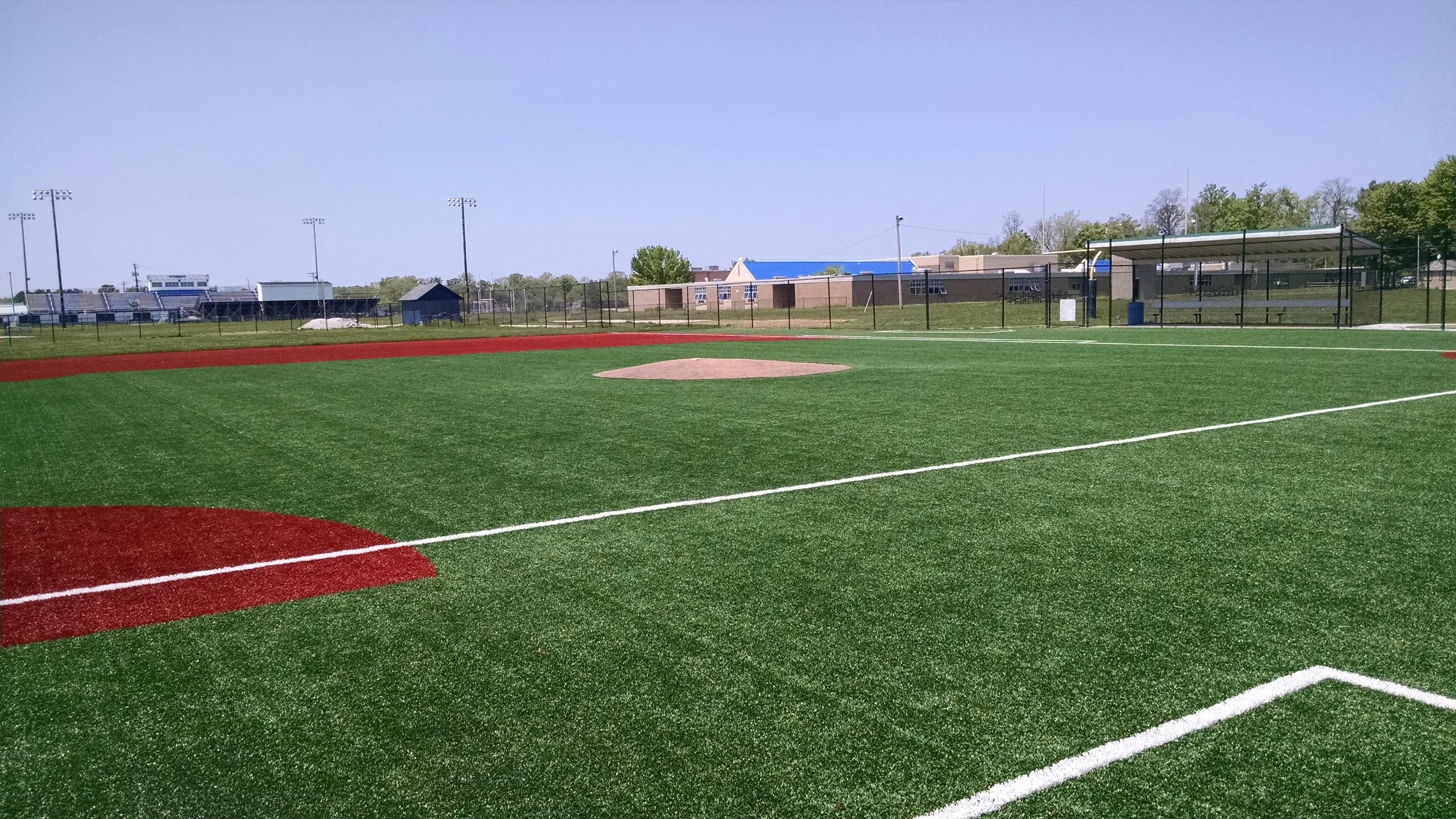 The existing field had an awkward fence alignment, uneven grades, persistently wet conditions, a poorly defined sand-clay infield, an undesirable ridge surrounding the infield, and a dated backstop. Behnke’s first leveled the infield and encompassing ridge and then installed a new synthetic turf infield. Per the client’s request, the pitcher’s mound remained sand-clay, with the rest of the infield and home plate being converted to synthetic turf. Drainage and a maintenance plan was devised for the natural turf outfield to correct the previous drainage and natural turf quality issues. In addition, most fencing was realigned and rehabbed to stay within budget.