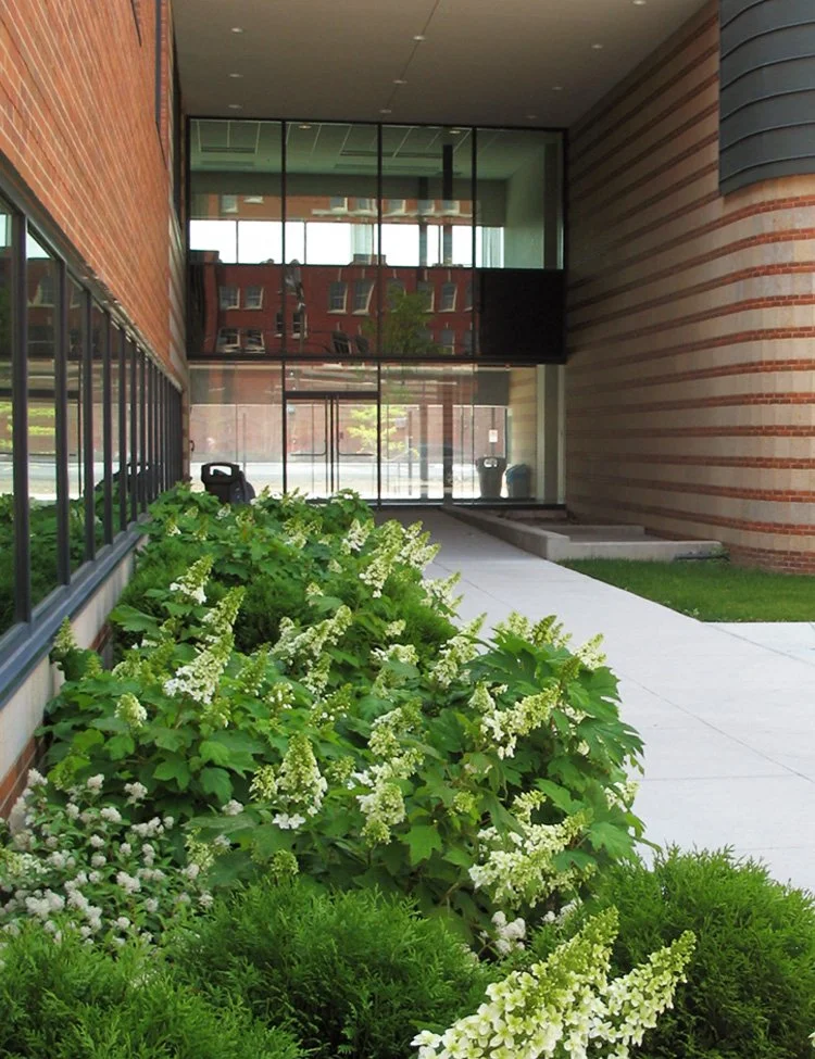 As the landscape architect on this project, Behnke employed native plant materials, bioretention cells, drought tolerant lawns, and permeable pavements to help the project meet its LEED goal.